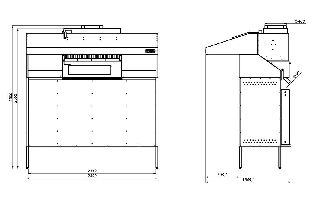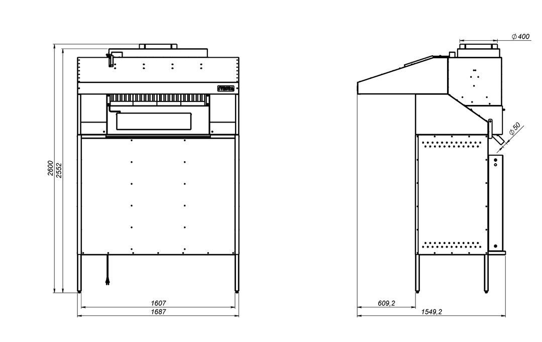 Комплектация: печь, искрогаситель с водяной завесой, подставка, решетка для теплового шкафа, жарочная решетка 1 шт., щипцы, кочерга
