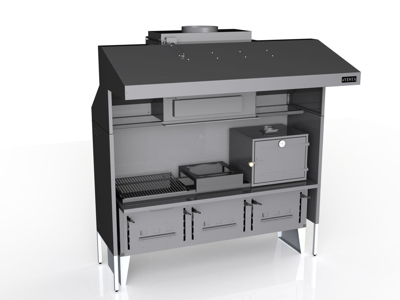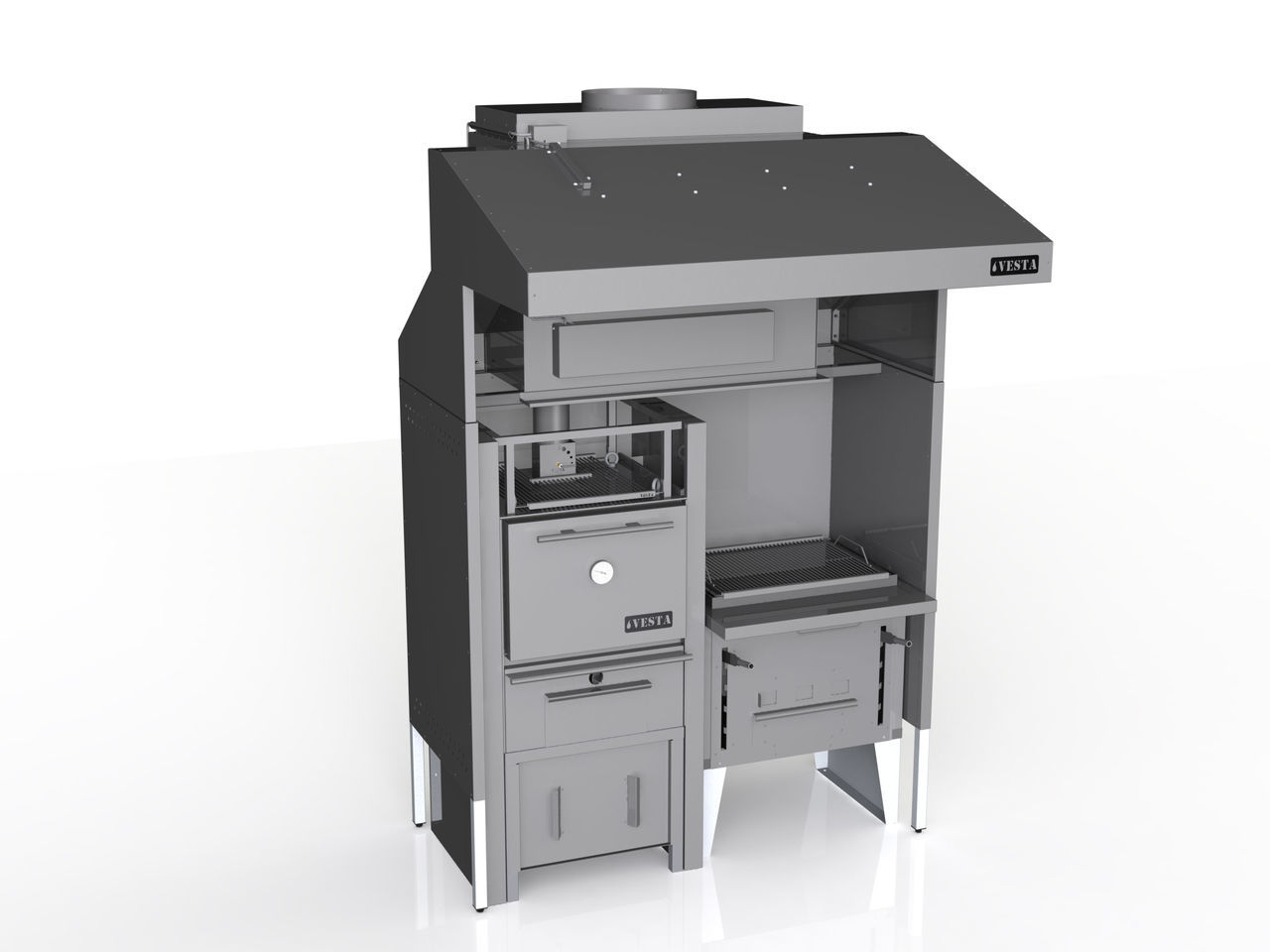 Vesta отличается низким энергопотреблением при высоком коэффициенте полезного действия, высокой скоростью приготовления, регулируемой тягой, а также системой пламегашения.